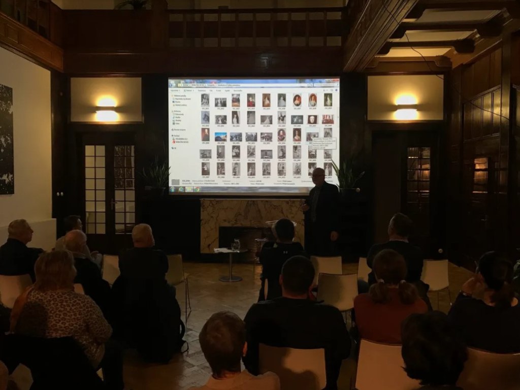 Téma setkání bylo Plesy, kluby, vinárny. Mluvilo se o tom, kam se Brňané chodili v minulosti rádi bavit. Pan doktor Březina nejprve promluvil o nejvýznamnějších brněnských podnicích a potom jsme si prohlédli předměty k tématu ze sbírek Muzea ve Šlapanicích.